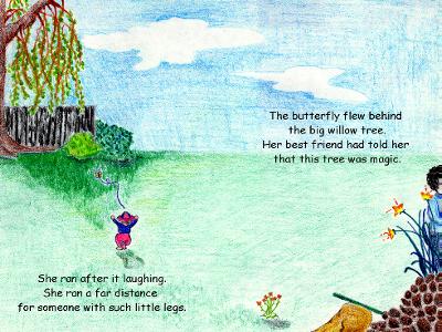 and the Willow Tree Join this little girl as she discovers a magical tree in the corner of her yard. Beautifully illustrated, this sweet tale along with the music and narration that accompanies it on CD, is one that will enchant children. The medium is colored pencil. Below is a peek at the first three plates (first six pages). The book and CD come in a smart package that houses and protects both of them together. 18 Pages